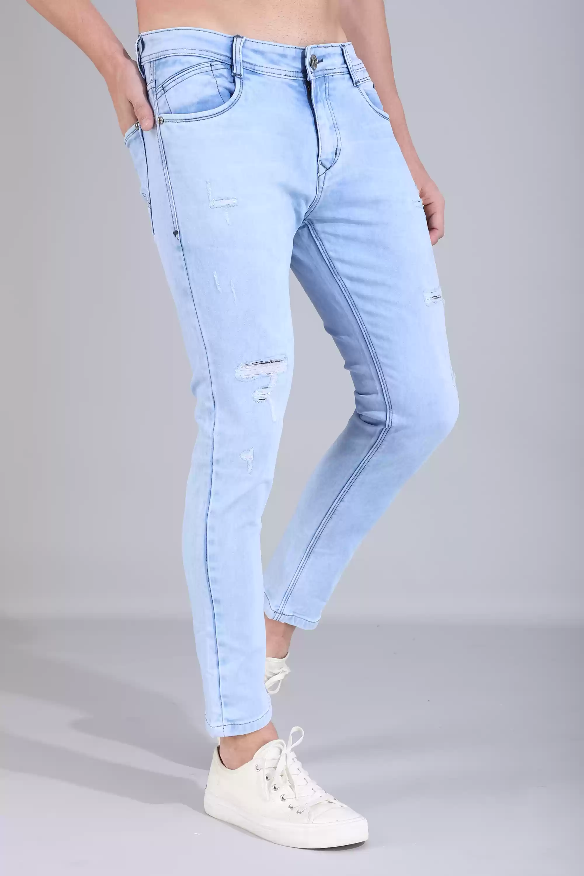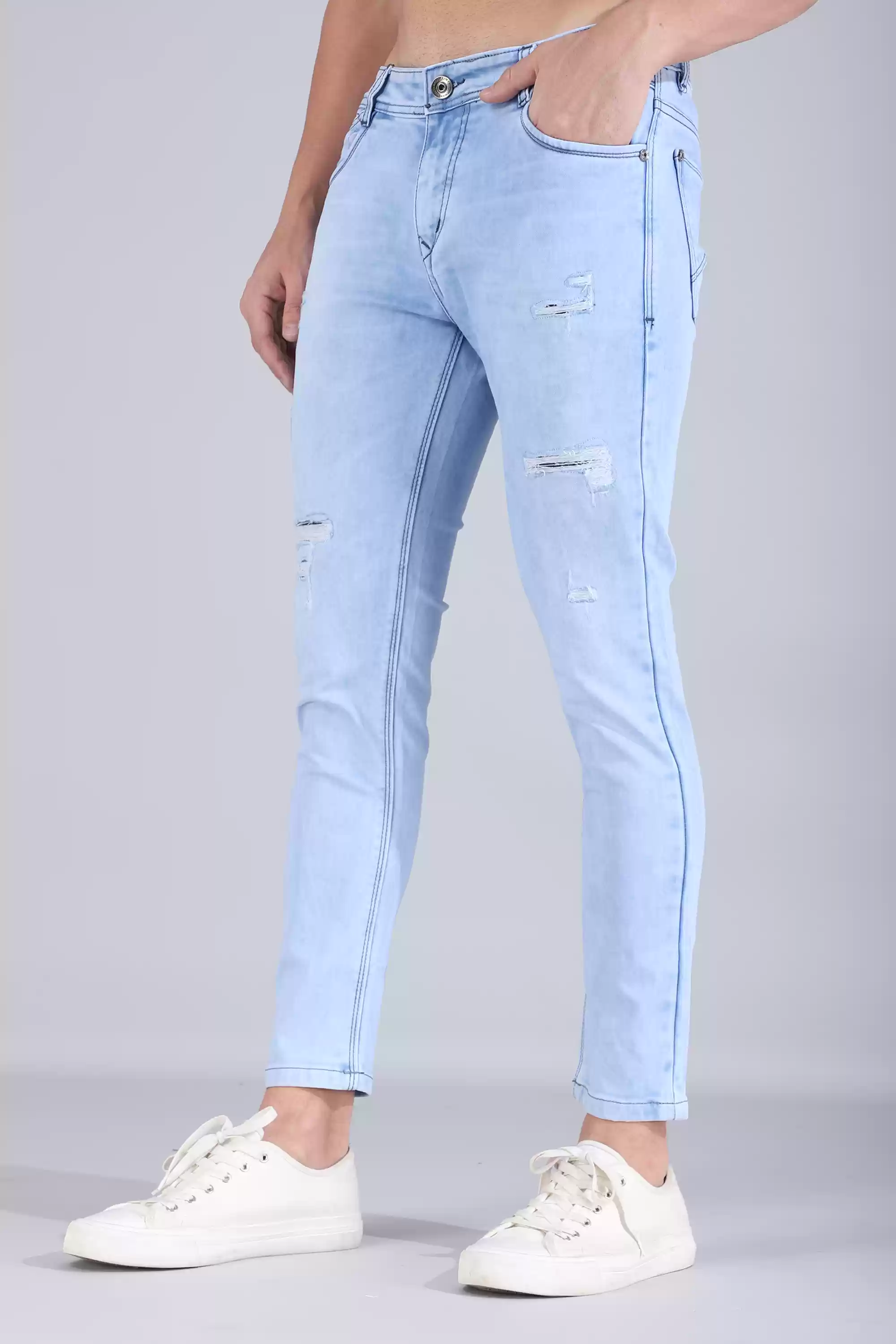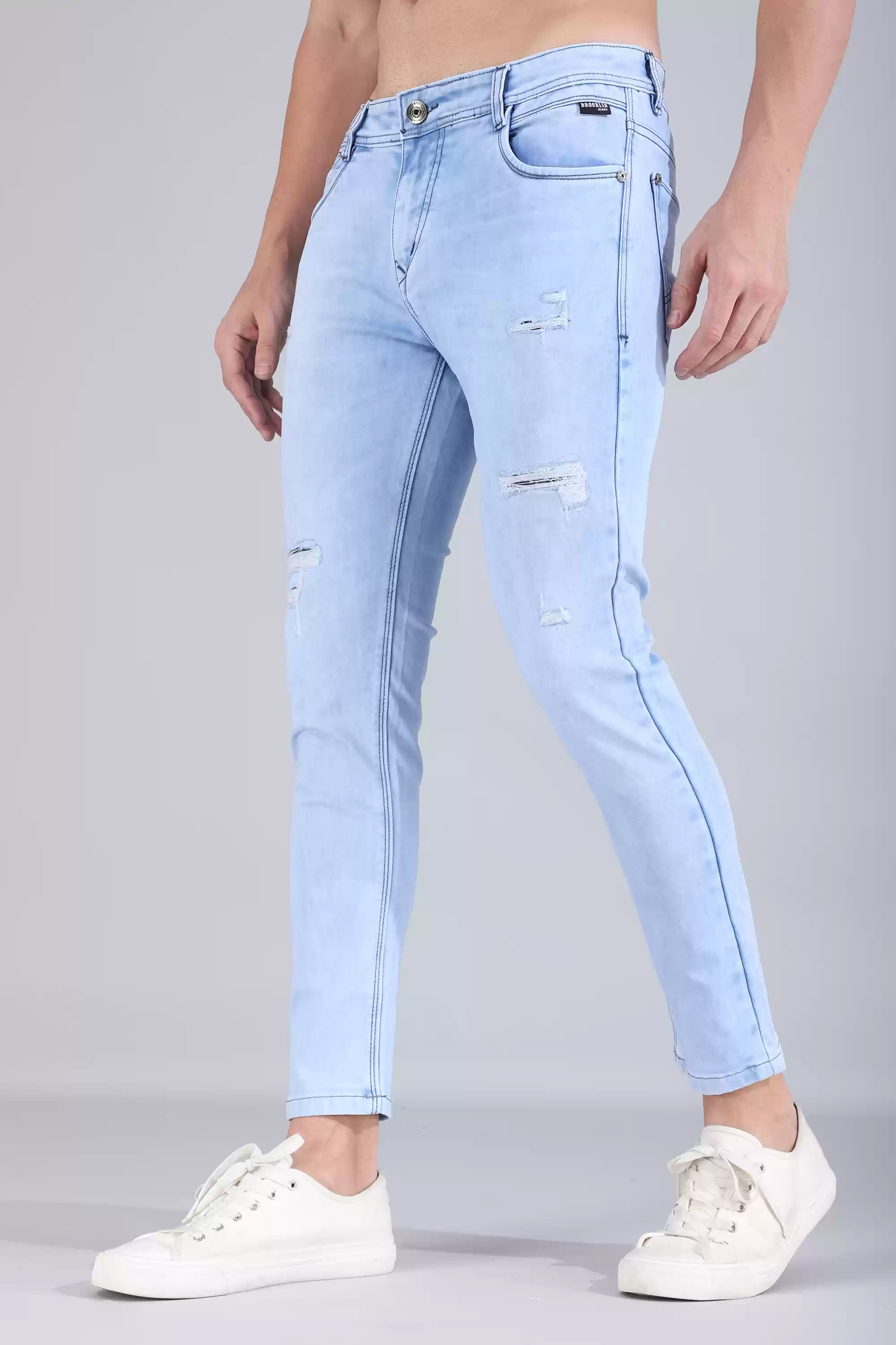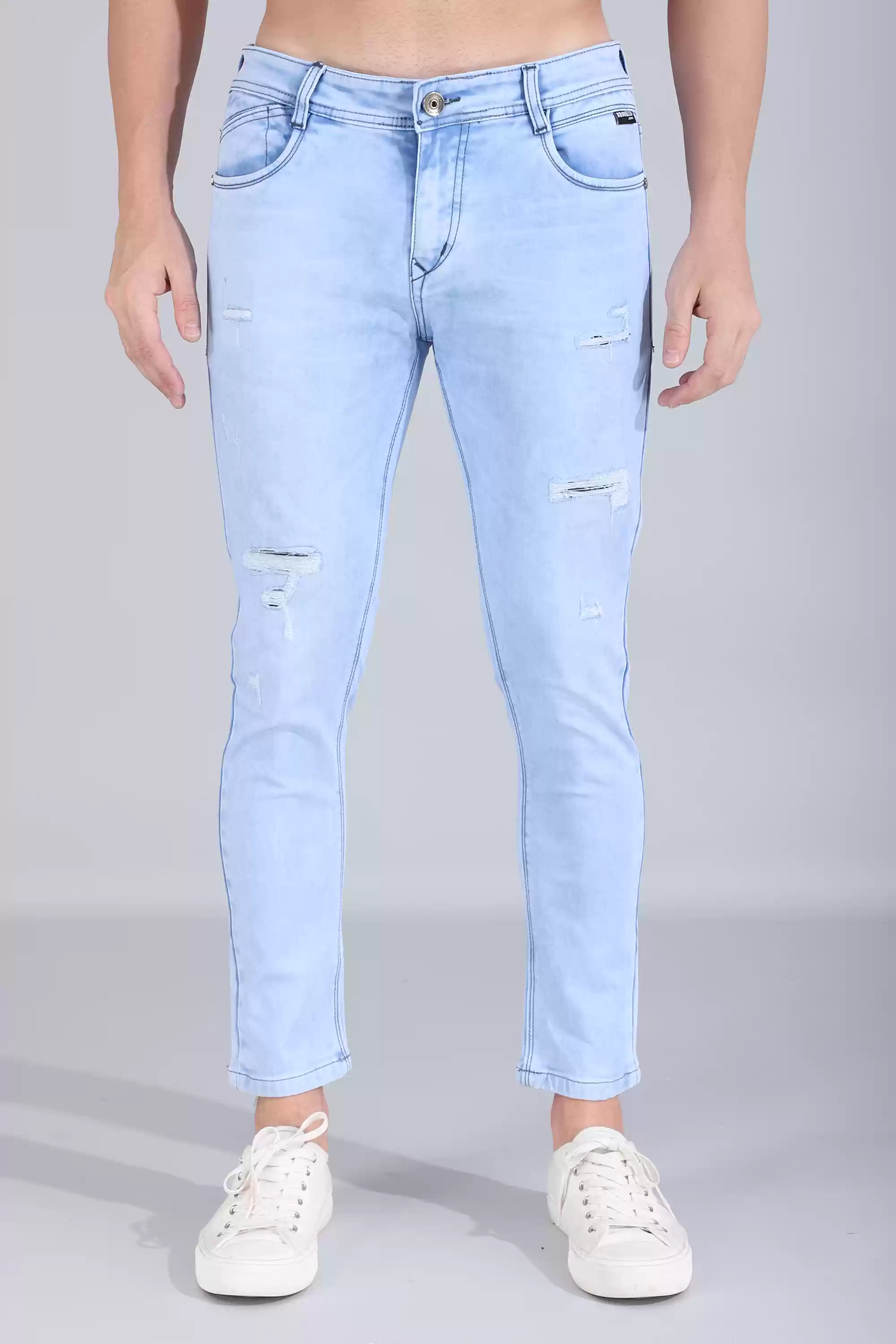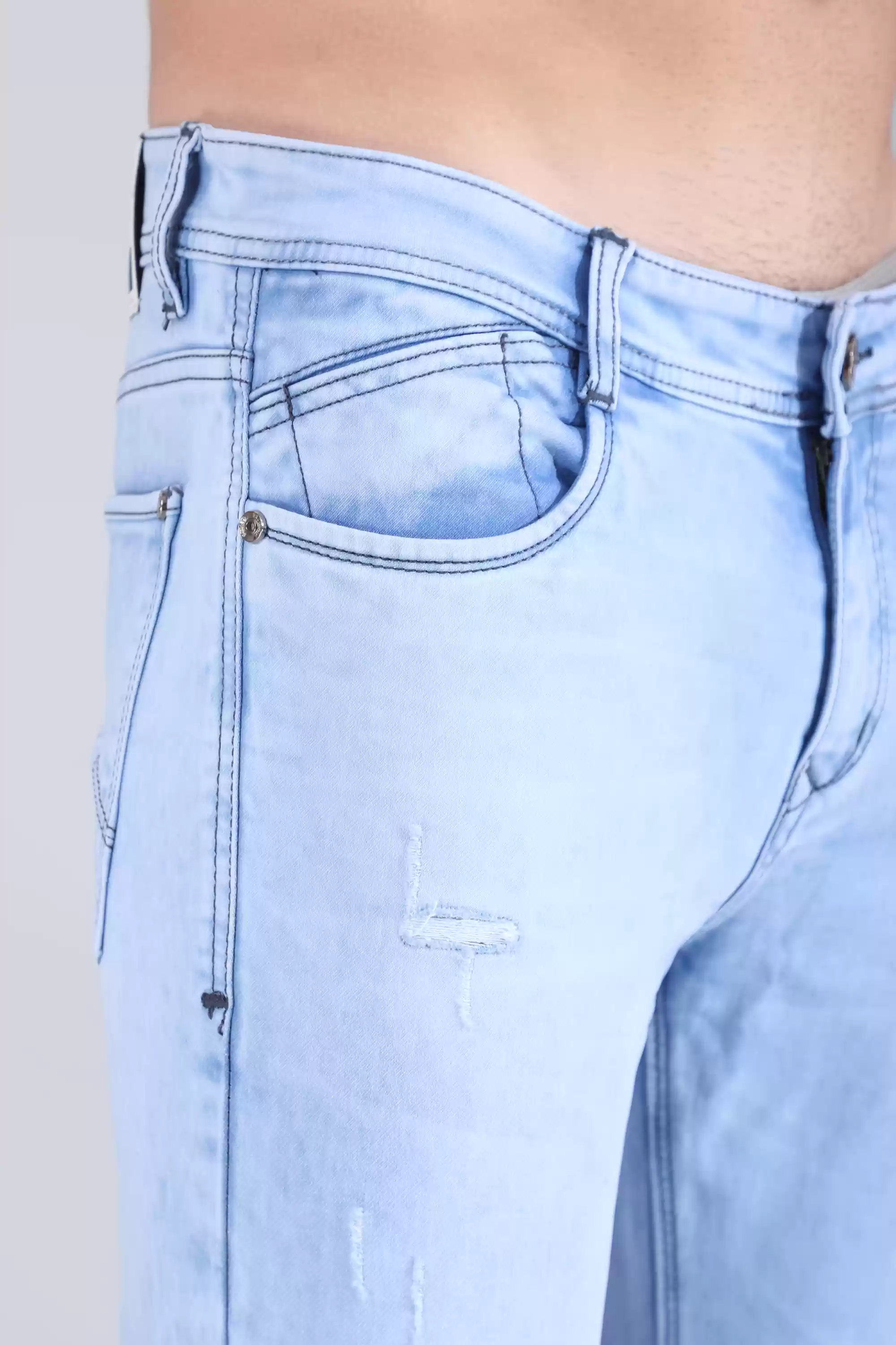 Crafted with precision, this (Aqua Blue) denim is a testament to enhancing the wearer's physique, resulting in a refined and elegant look. Tailored for a relaxed yet sophisticated fit, it not only accentuates your natural body contours but also guarantees comfort and ease, ensuring that every moment becomes a stylish statement. With its painstaking attention to detail, this denim seamlessly merges style and functionality, offering an unparalleled fusion of fashion and practicality. - Slim fit light wash denim - 5 pocket styling. - Metal coin pocket and back batch branding. - Zipper and button closure. - Cotton Polyester Fabric SIZE & FIT - The model (Chest-40, Waist-32, Hips-38, Height-188 cms) is wearing a size 32 |