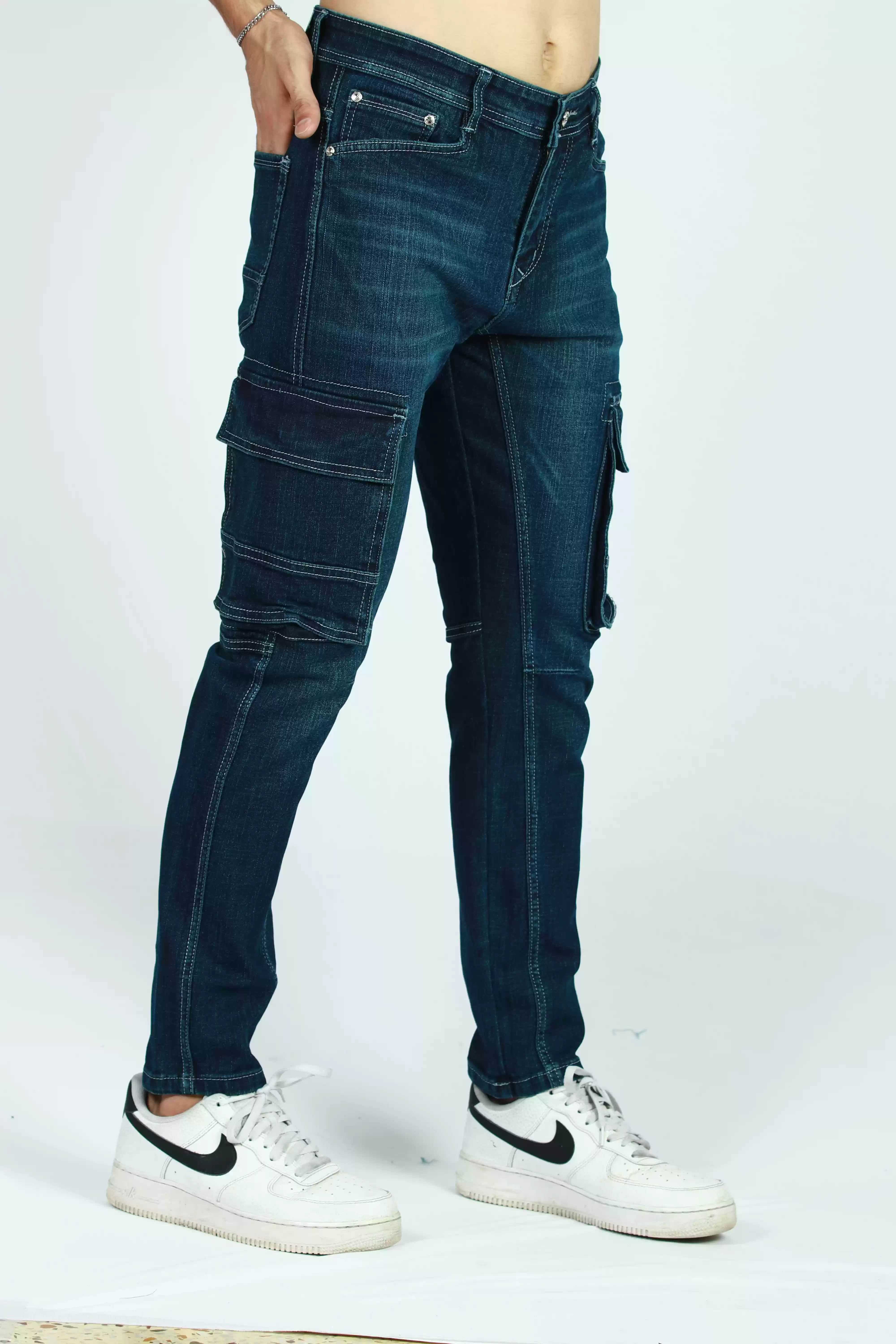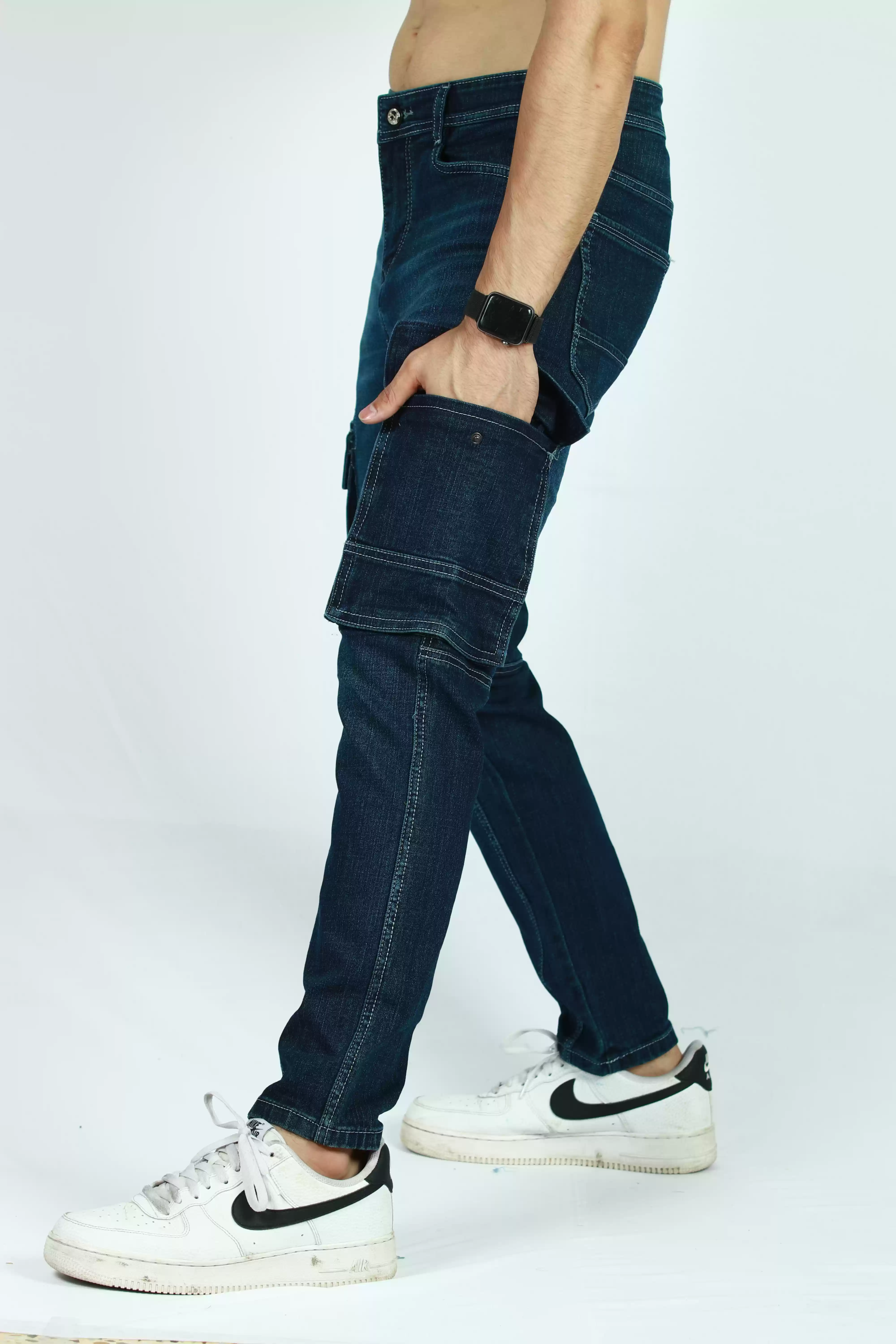 Elevate your casual look with our Dark Indigo Denim Cargo Jeans. Designed with a comfortable regular fit, these jeans feature spacious cargo pockets for a blend of style and practicality. Made from durable denim in a rich dark indigo hue, they’re perfect for a laid-back day or an on-the-go lifestyle. Ideal for anyone who values both fashion and function, these cargo jeans bring a modern edge to a classic design.