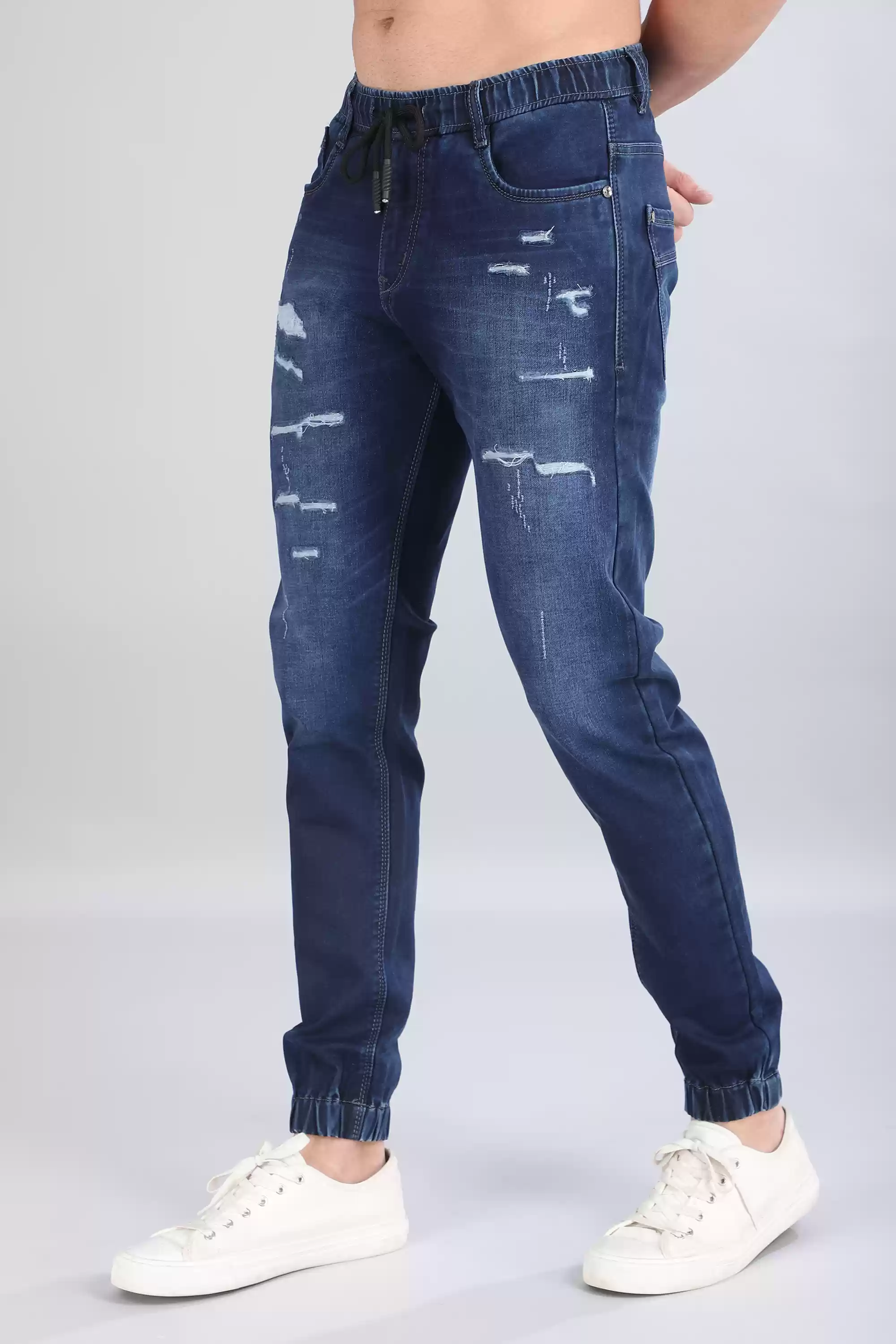 Indulge in rugged charm with our Dark Shade, No Fade Blue Jeans, crafted for those who appreciate timeless style with a touch of edge. These jeans feature a relaxed fit with a mid-rise waist, ensuring comfort without compromising on style. Made for those who dare to stand out, these jeans boast a highly distressed design, adding character to any outfit.
