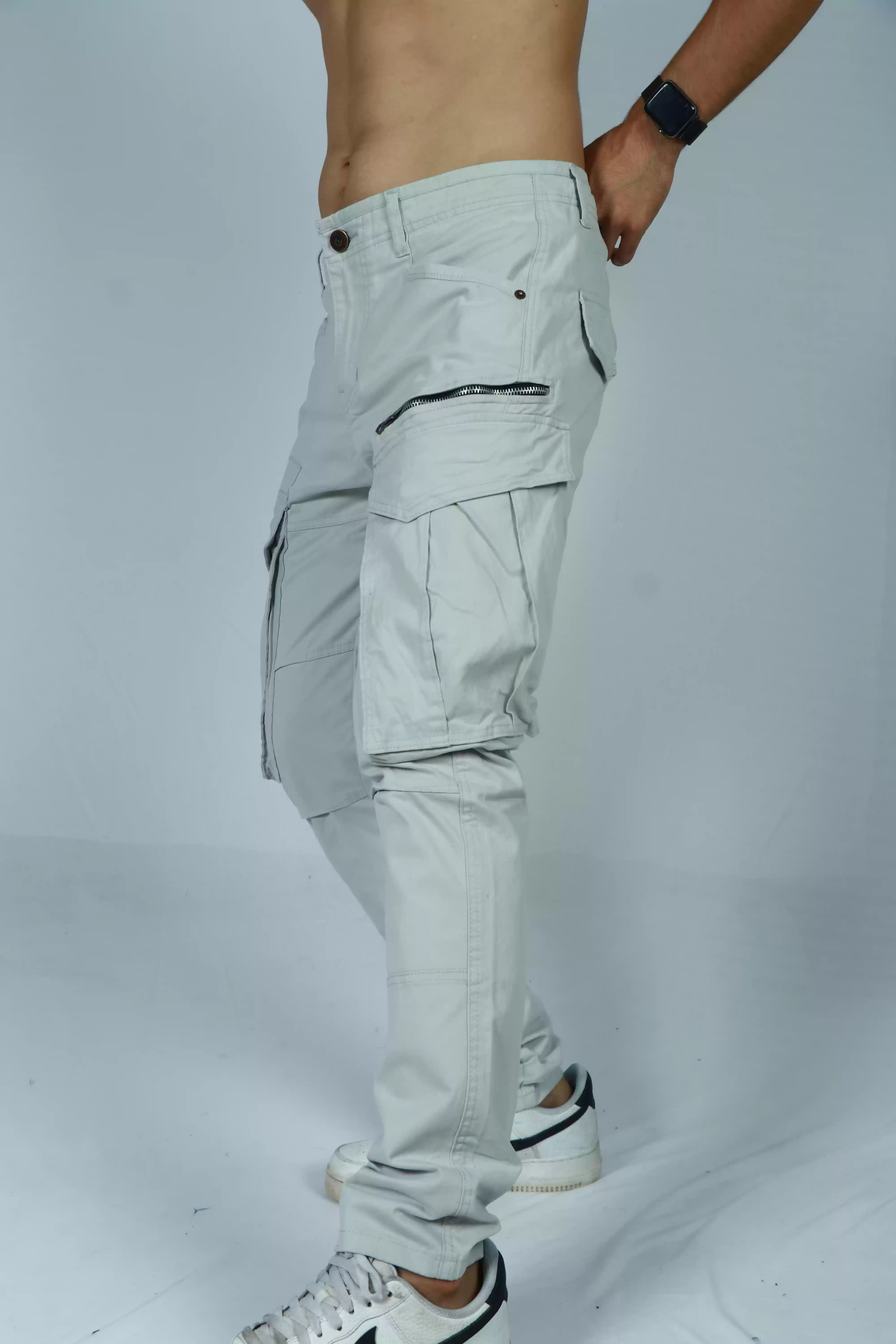 Elevate your everyday style with our White Smoke Cotton Regular Fit Cargos. Crafted from soft, breathable cotton, these cargos offer a perfect blend of comfort and versatility, making them ideal for any casual outing.